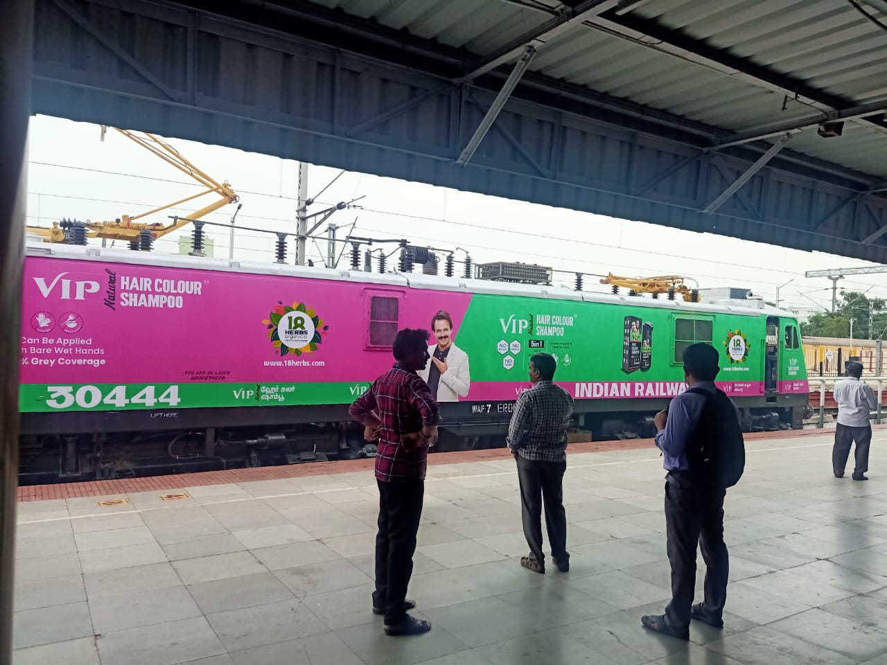 அழுக்கு படிந்த ரயில் என்ஜின்களை ., ‘விஐபி ஹேர் கலர் ஷாம்பூ’ (Advt) களால் குளிப்பாட்டி , அழகு பண்ணி., நடிகர் ஆர்கே அதிரடி!!